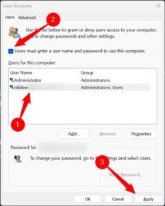 👉 Uncheck “Users Must Enter A User Name and Password To Use This Computer”